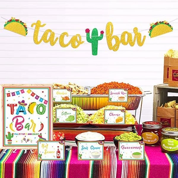 Amazon Com Taco Bar Decoration Kit Banner Sign Tents Garland For Cinco De Mayo Mexican Fiesta Themed Party Bachelorette Bridal Shower Housewarming Home Kitchen
